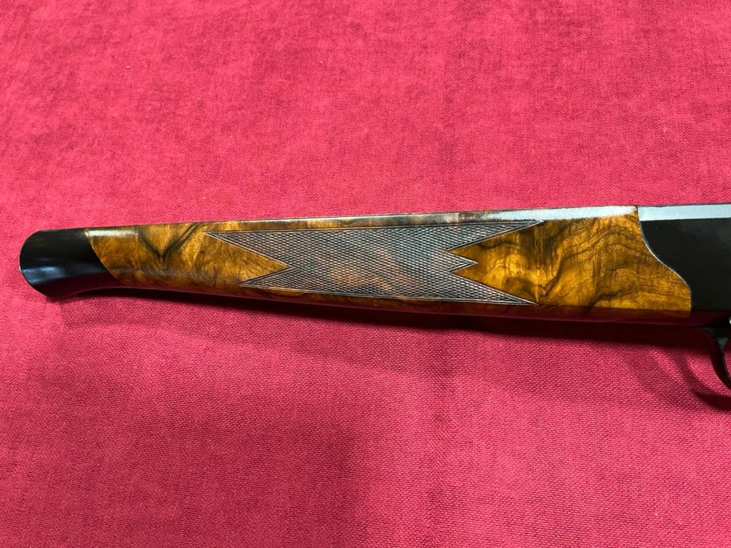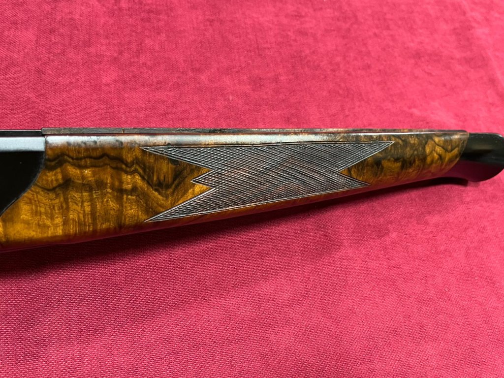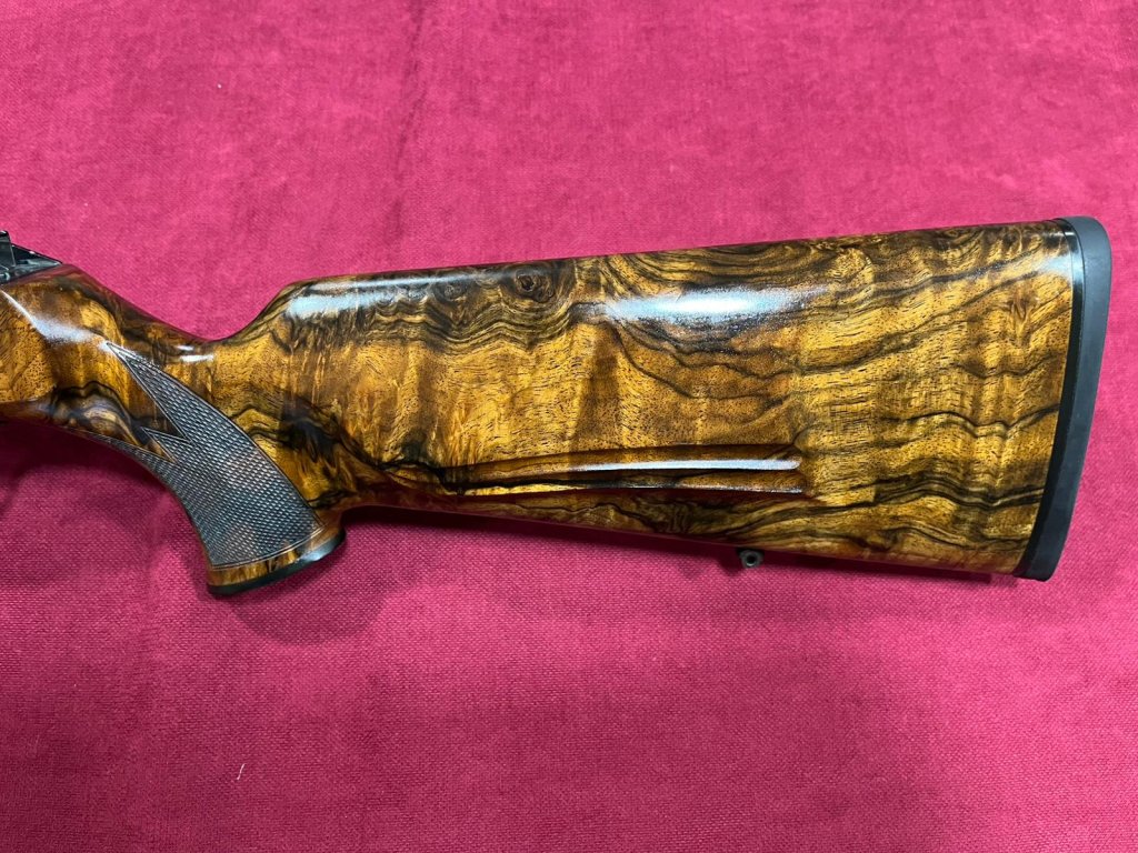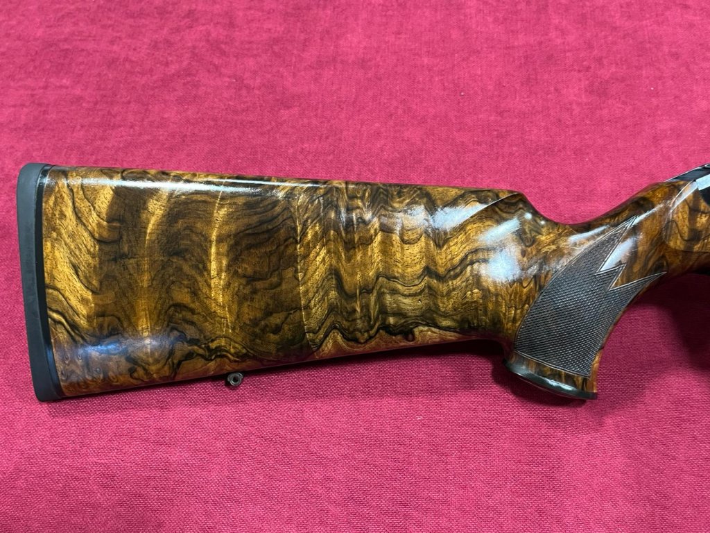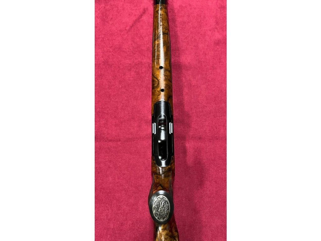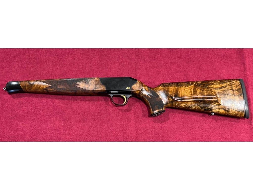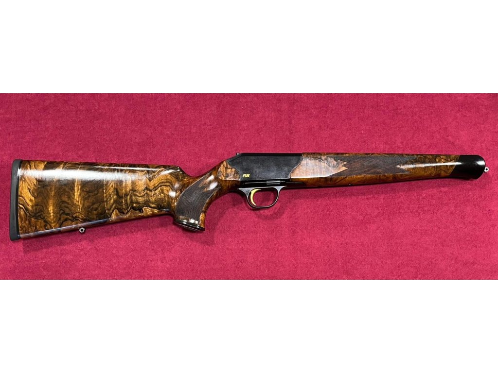 Pažba pro Blaser R8 je vyrobena z dříví třídy 9, na spodku rukojeti je rytina se srncem, zlatá spoušť.